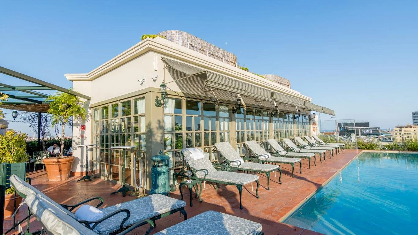 Sir Victor puts you in the heart of Eixample — with Gaudí out the window and rooftop rosé within reach. It’s all clean lines, curated bookshelves, and velvet loungers made for long mornings.